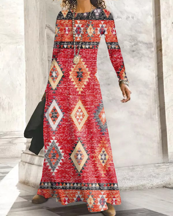 Vintage Long Sleeve Crew Neck Casual Dresses