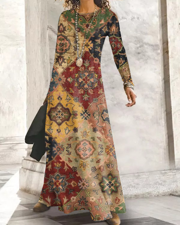 Vintage Long Sleeve Crew Neck Casual Dresses