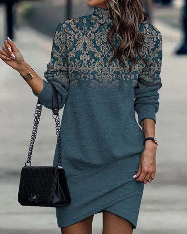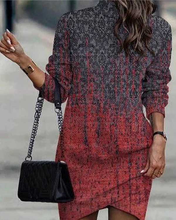Vintage Turtleneck Long Sleeve Irregular Dress