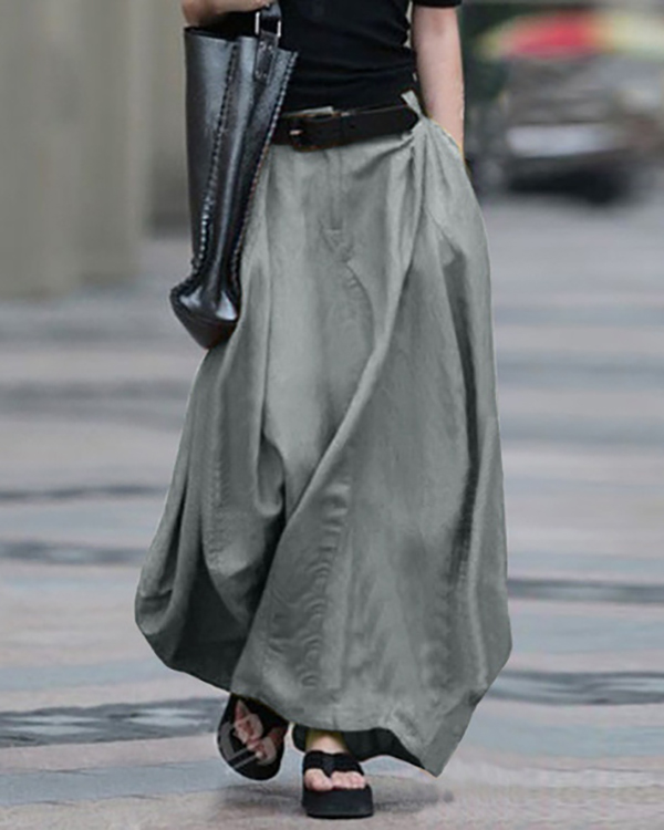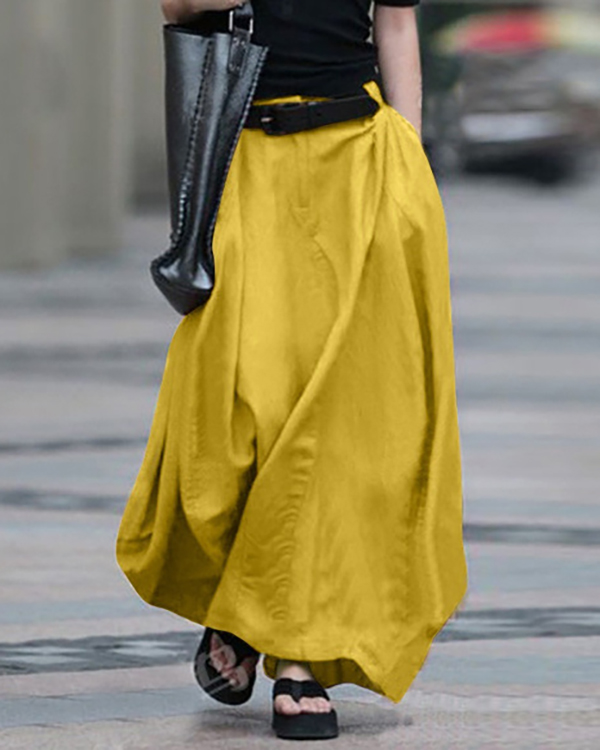 Vintage Solid Color Side Pocket Zipper A-Line Skirt