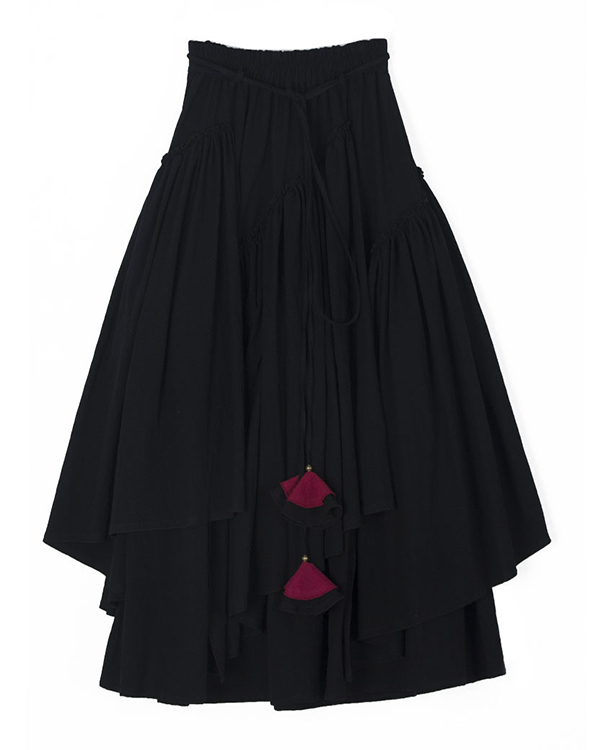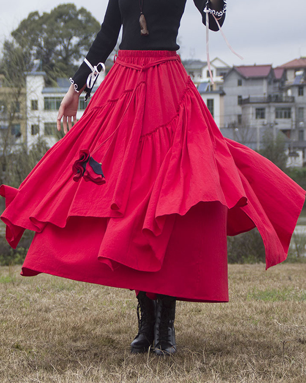 Solid Color Vintage Ethnic Pleated Linen Skirt