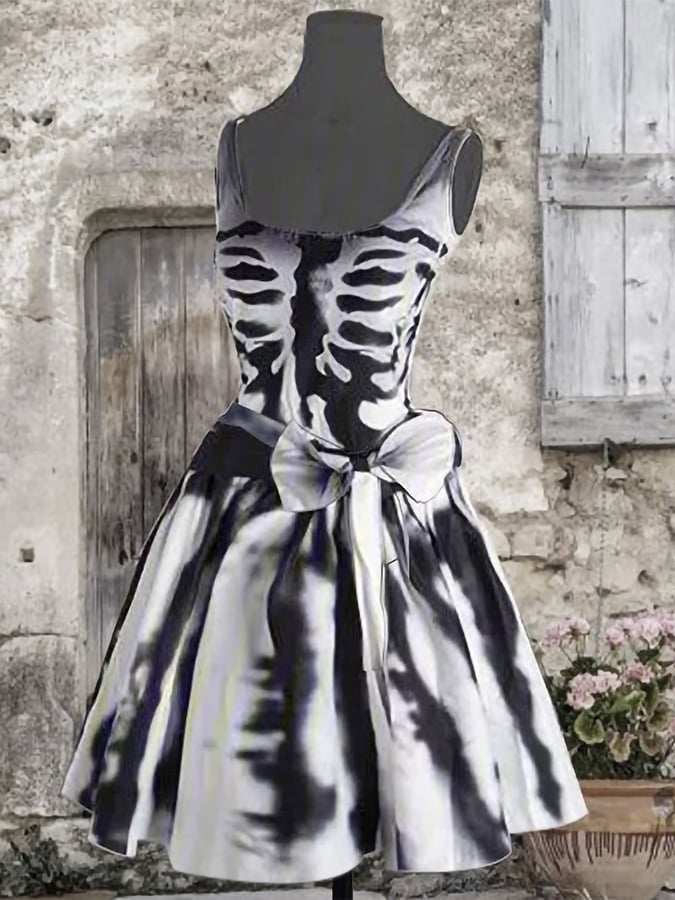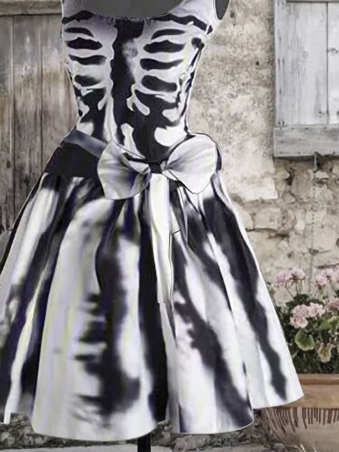 Skeleton Print Sleeveless Dress