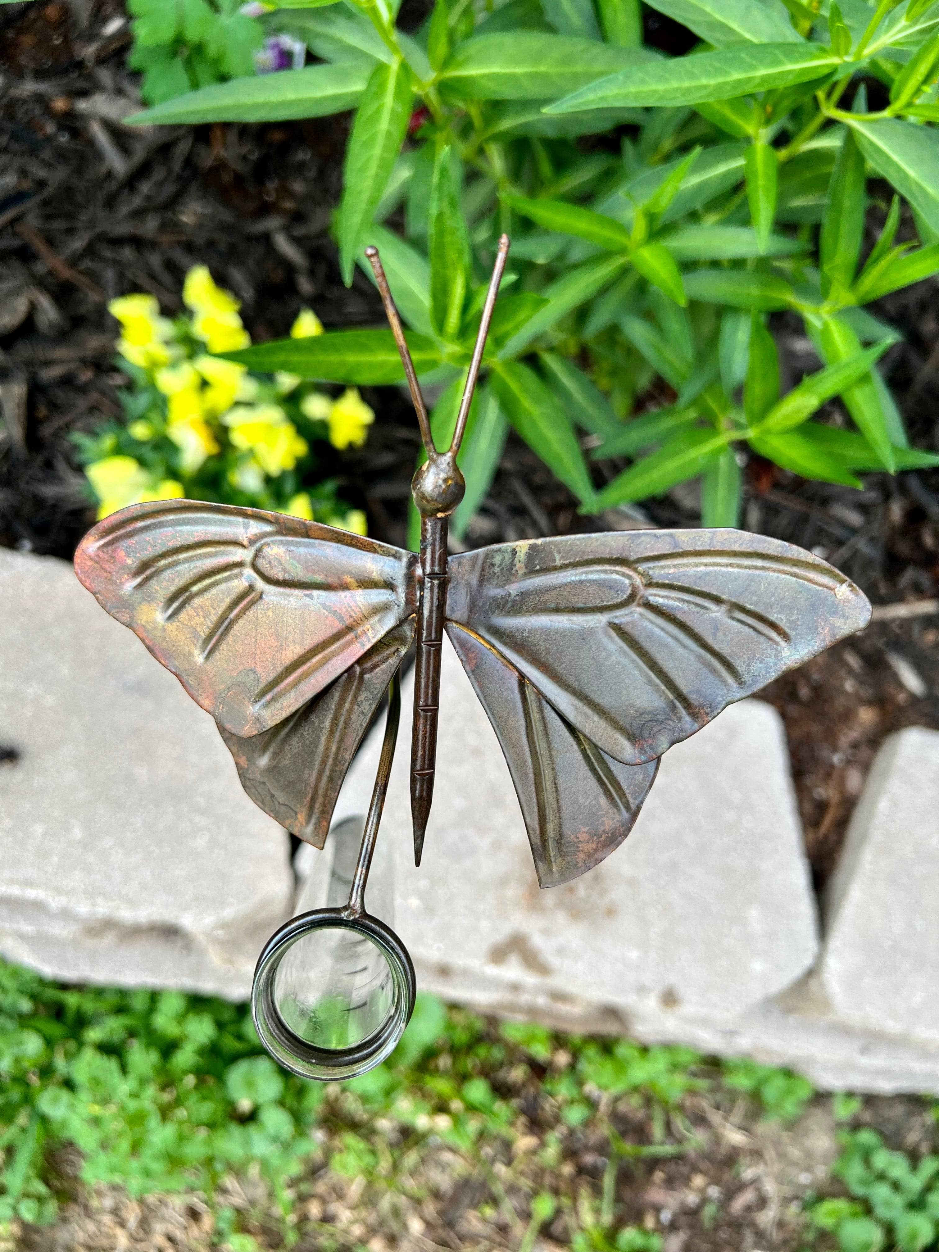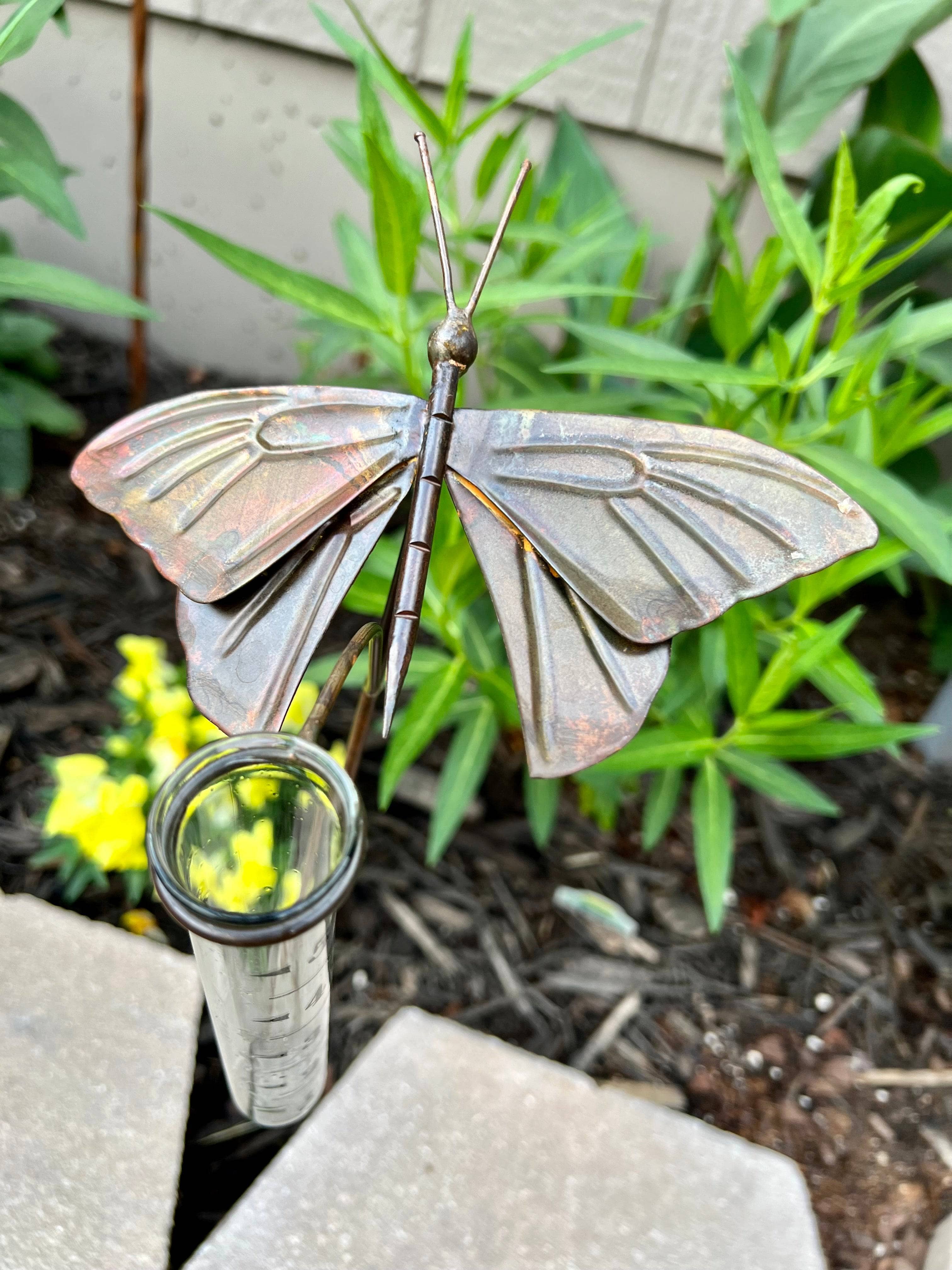 Every gardener knows the importance of rain gauges, especially when growing fruits, vegetables and herbs! With the Butterfly Rain Gauge, you won’t have to compromise beauty for utility. This gorgeous piece features a butterfly topped with a flamed metal finish. Who said helpful couldn’t also be beautiful? Like all of our Happy Gardens rain gauges, this item is individually handcrafted, and will last many rainy seasons.