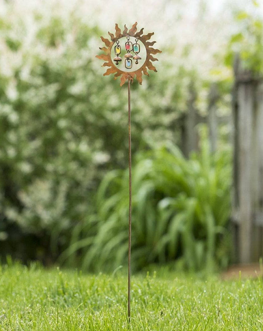 Ah, sunshine and color! Two of our absolute favorite things. Celebrate them both with this funky garden stake, which has been happily handcrafted for a truly unique look and feel. Inside of an iridescent sun, this stake features four little pops of color and two sweet, miniature bells. Together, all these handcrafted elements create a truly special garden stake that’ll bring cheer to any outdoor area for years to come.
