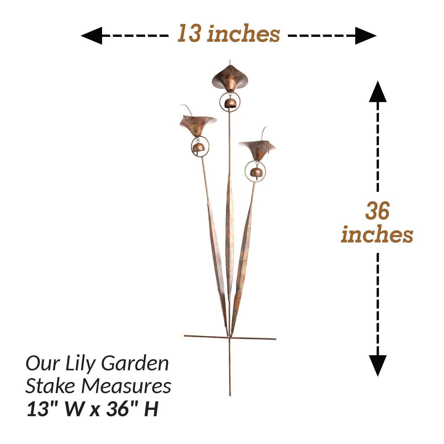 Bring a touch of elegance to any garden or landscape with this flamed Triple Calla Lily Garden Stake. This “wow”-worthy garden stake features a trio of sculpted lilies and several round bells that chime gently in the breeze.