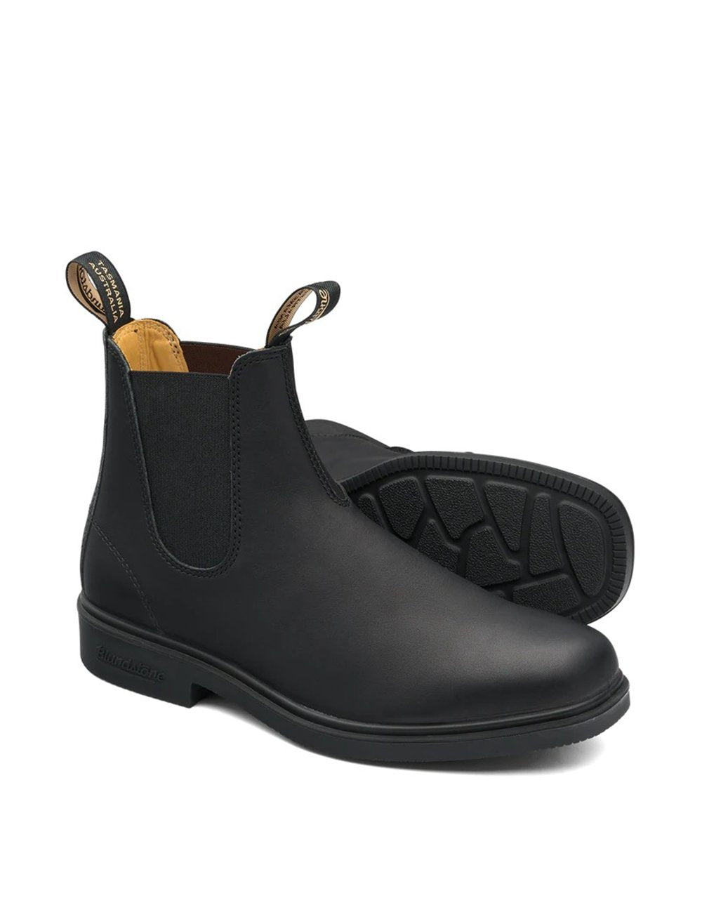 Blundstone #068 Chelsea Black is a versatile all-weather boot crafted for dry, all-day comfort. A thinner sole profile gives 068 Chelsea a leg up for people who require black footwear at work. We hear that pilots love this boot for its sensitive "foot-feel" on flight foot controls. Chelsea boot height adds excellent support and all-season protection from the elements.