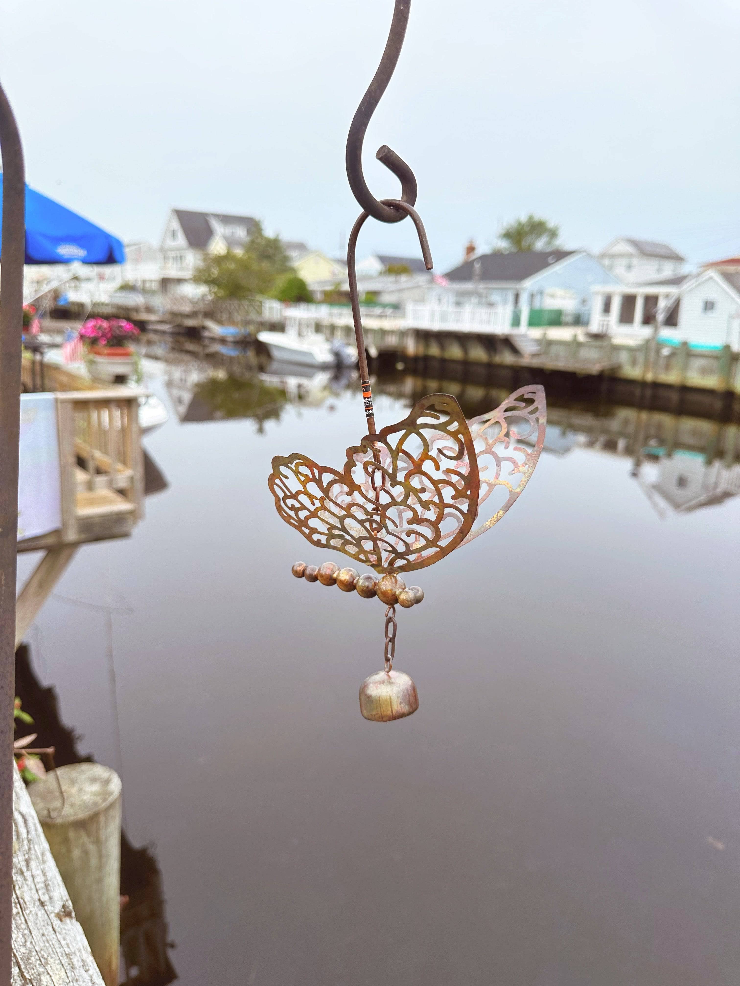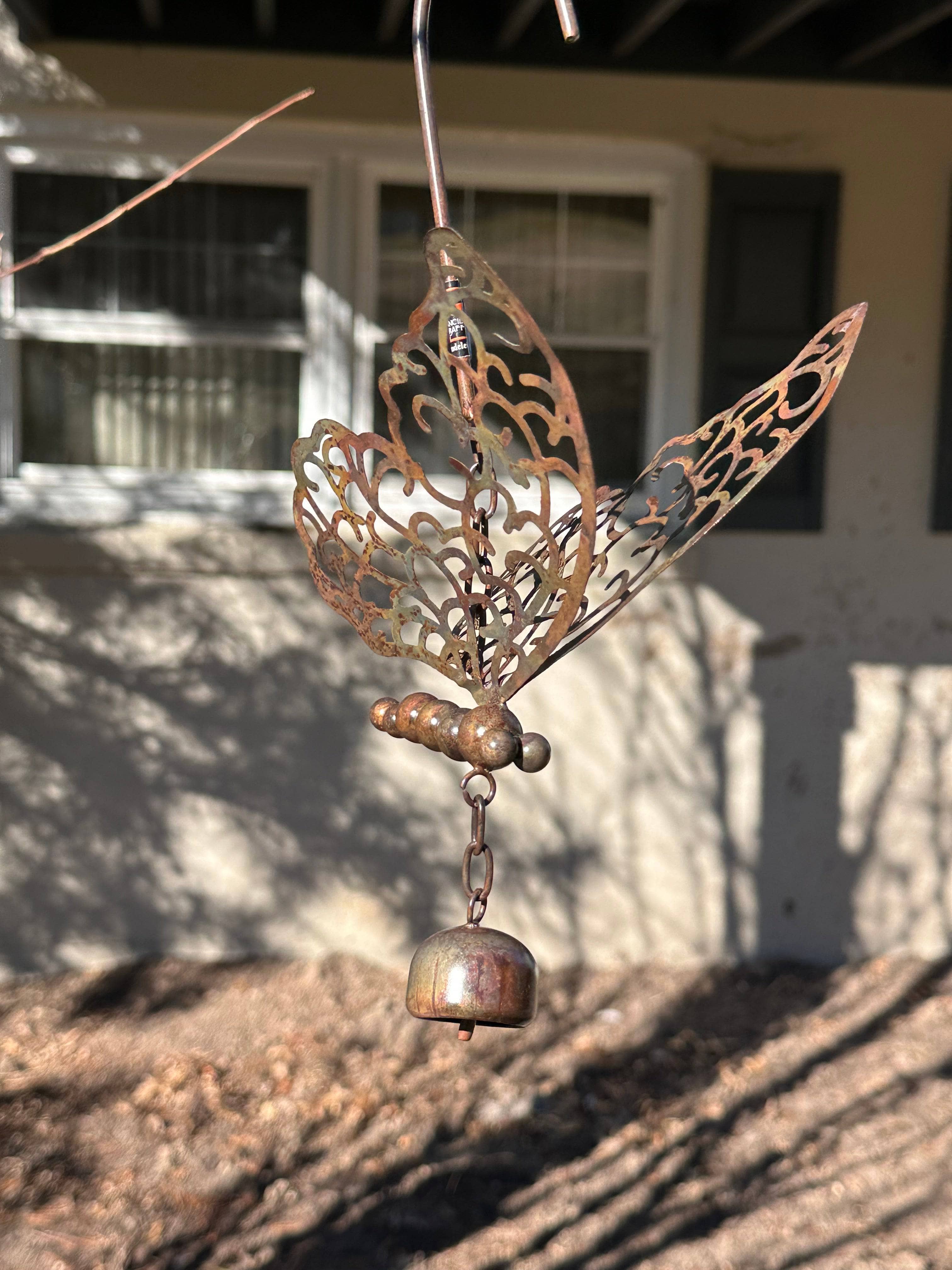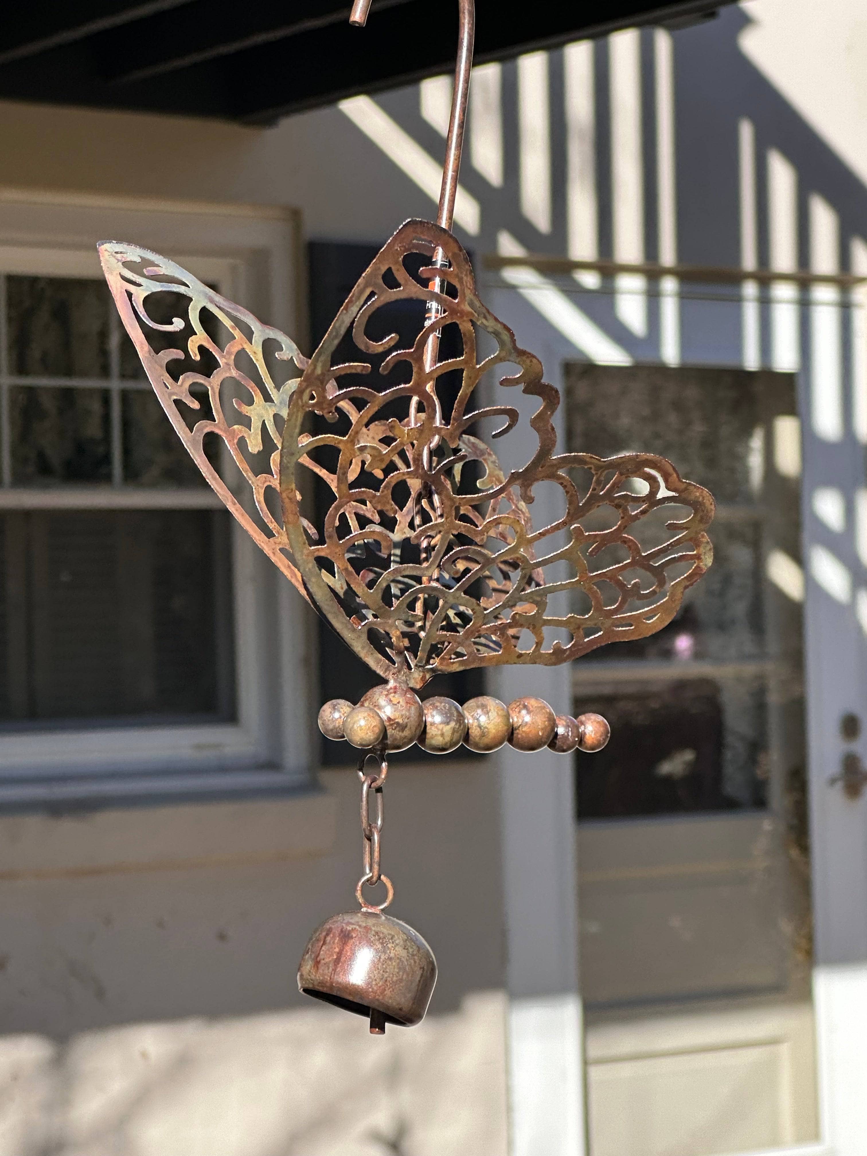 Are butterflies strong enough to carry bells? Nope. But our Hanging Butterfly with Bell Ornament doesn’t play by the rules. Delicately handcrafted with fine details, this butterfly holds a tiny bell that will chime wherever it hangs. It's just charming and unique enough to punch up any outdoor space, without becoming a distraction.