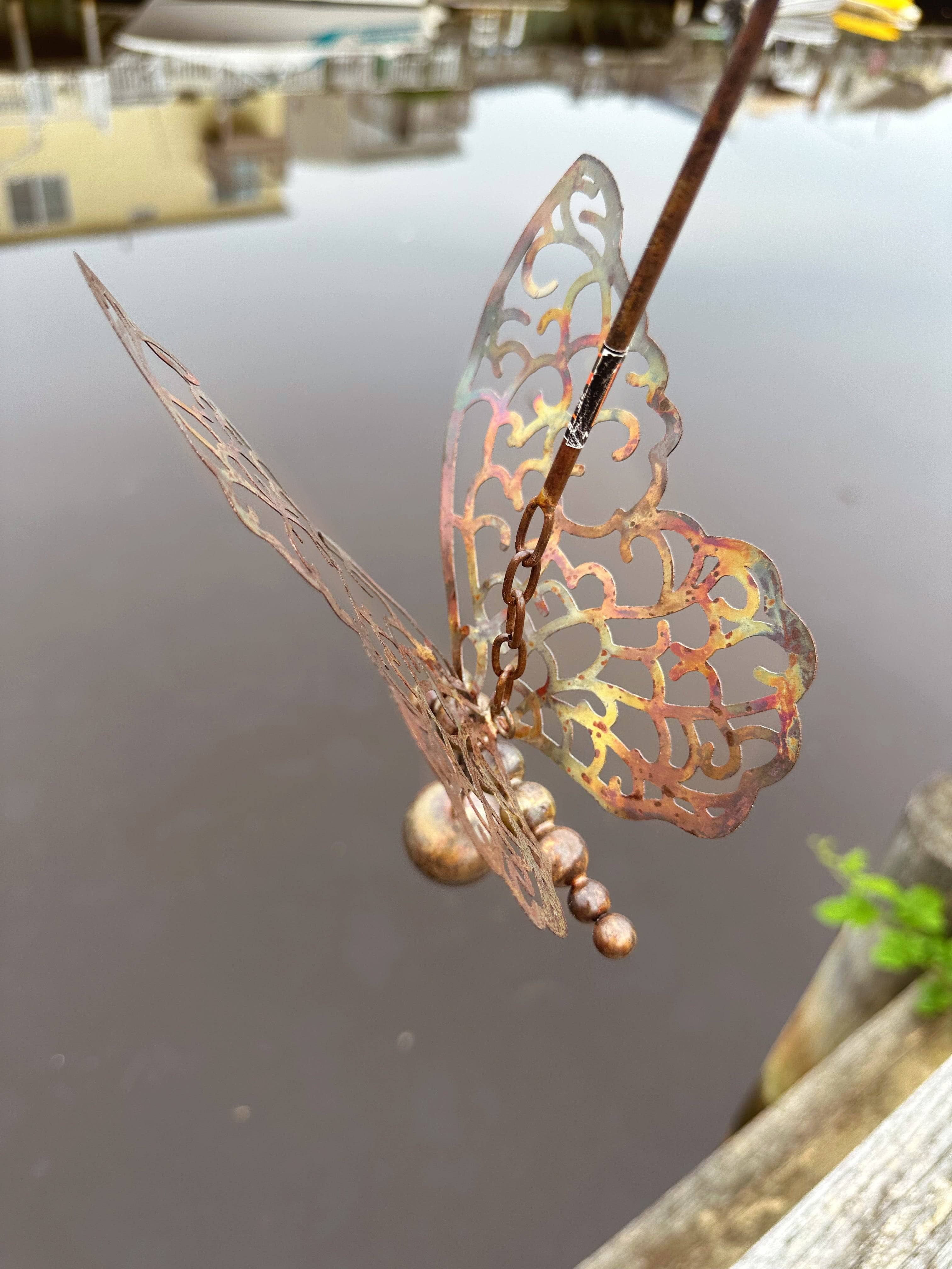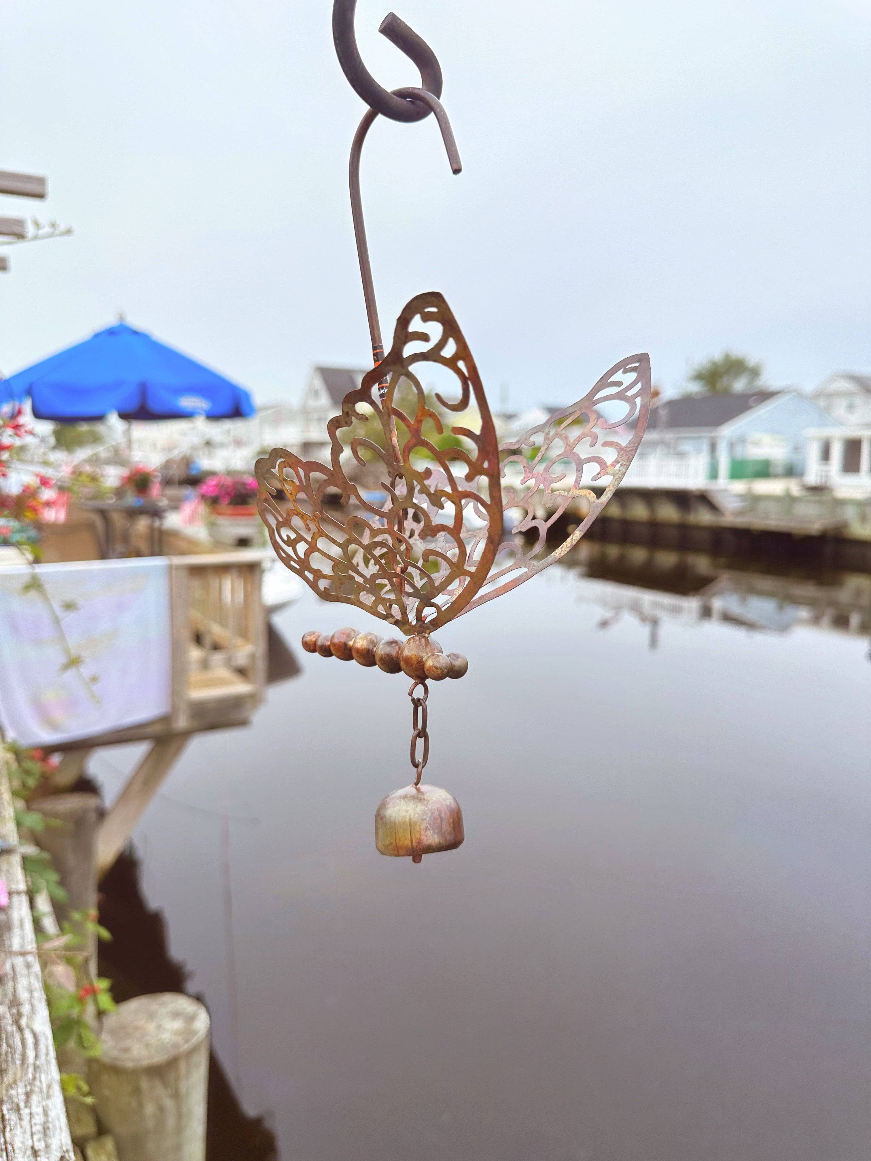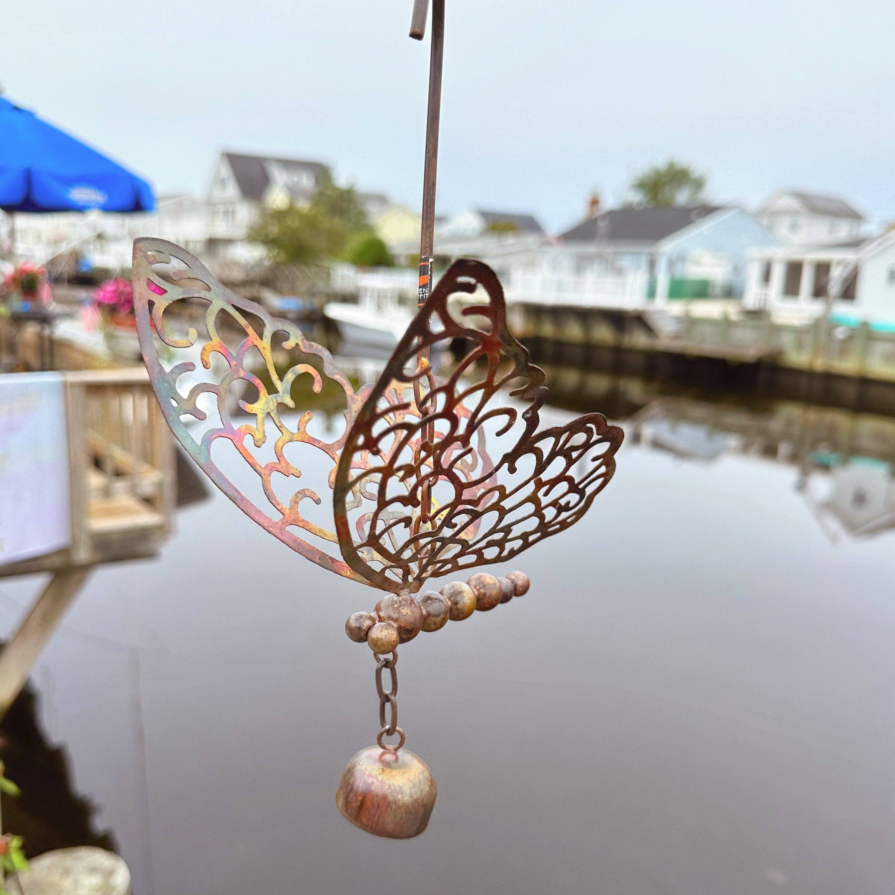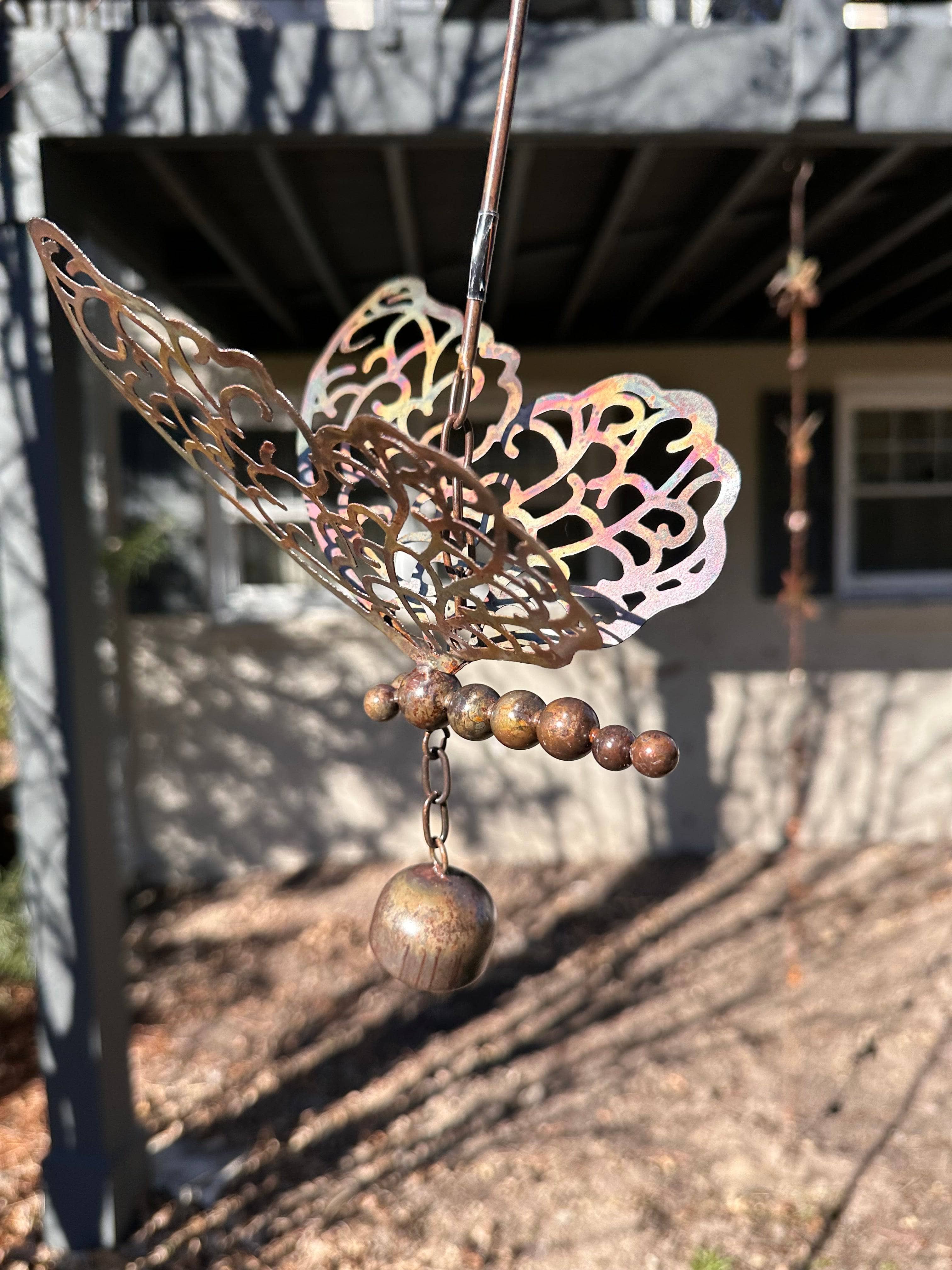 Are butterflies strong enough to carry bells? Nope. But our Hanging Butterfly with Bell Ornament doesn’t play by the rules. Delicately handcrafted with fine details, this butterfly holds a tiny bell that will chime wherever it hangs. It's just charming and unique enough to punch up any outdoor space, without becoming a distraction.