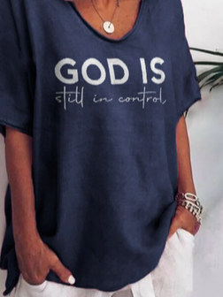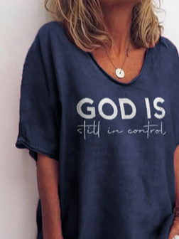 V Neck Casual Letter T-Shirt
